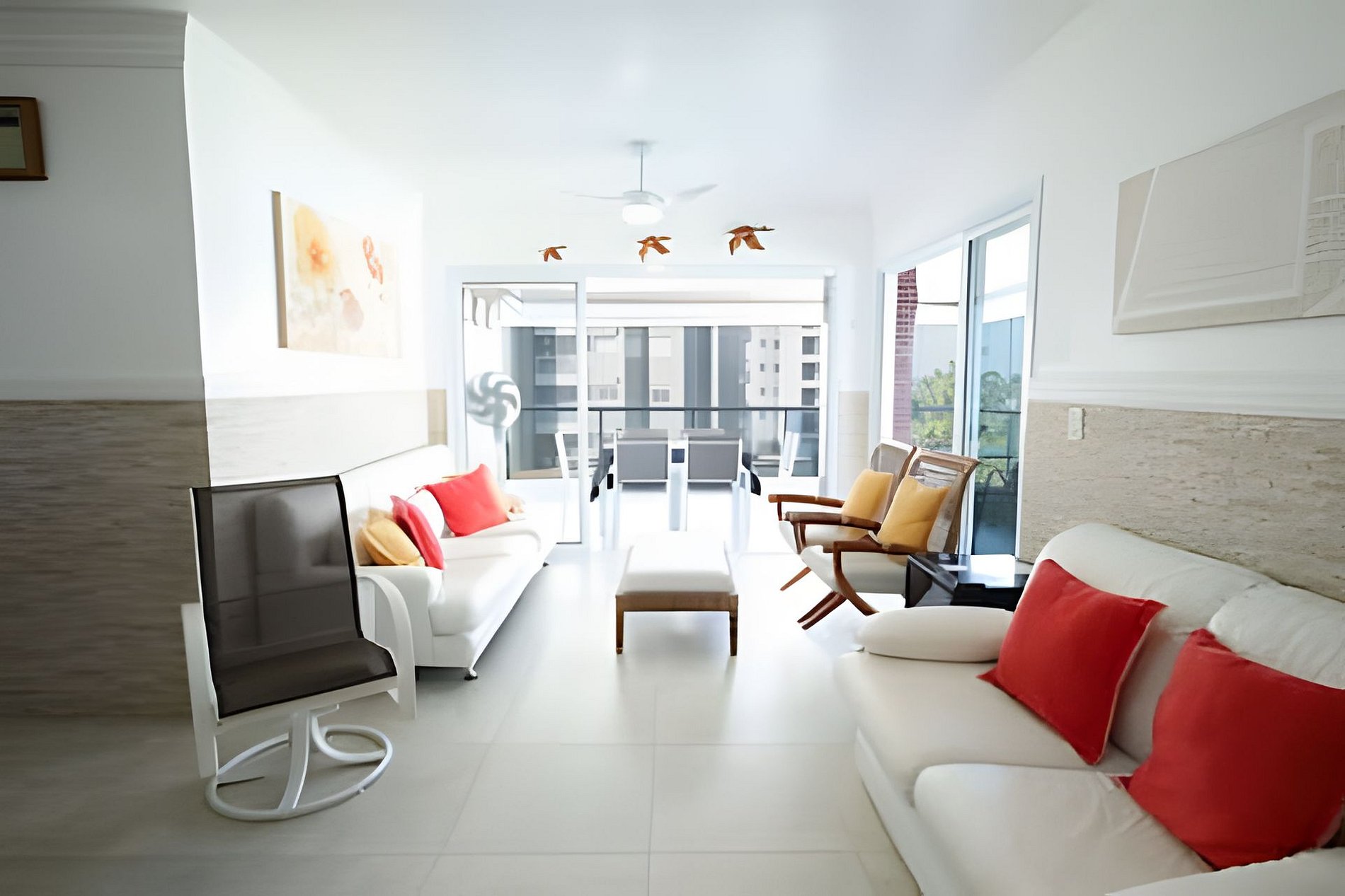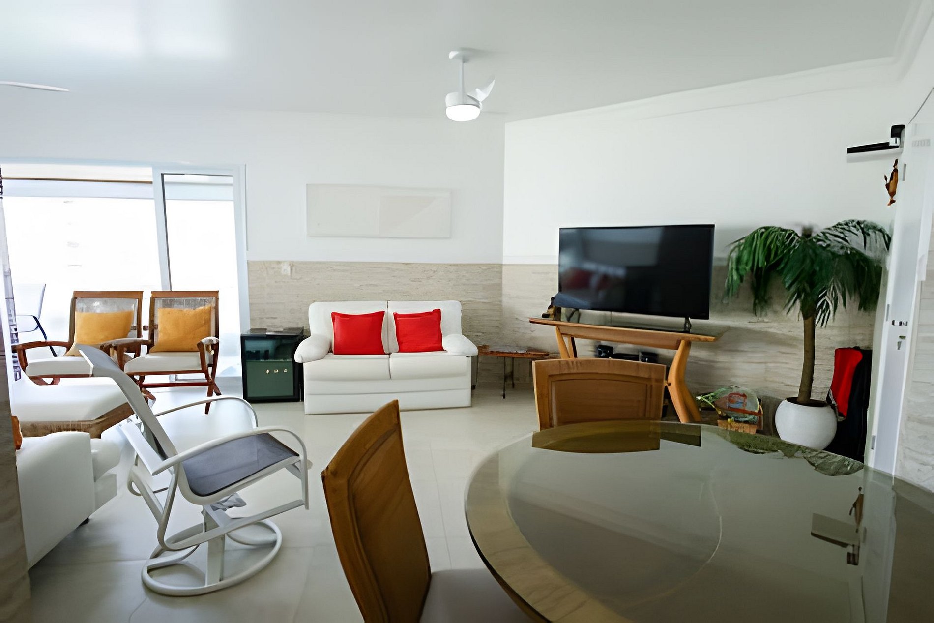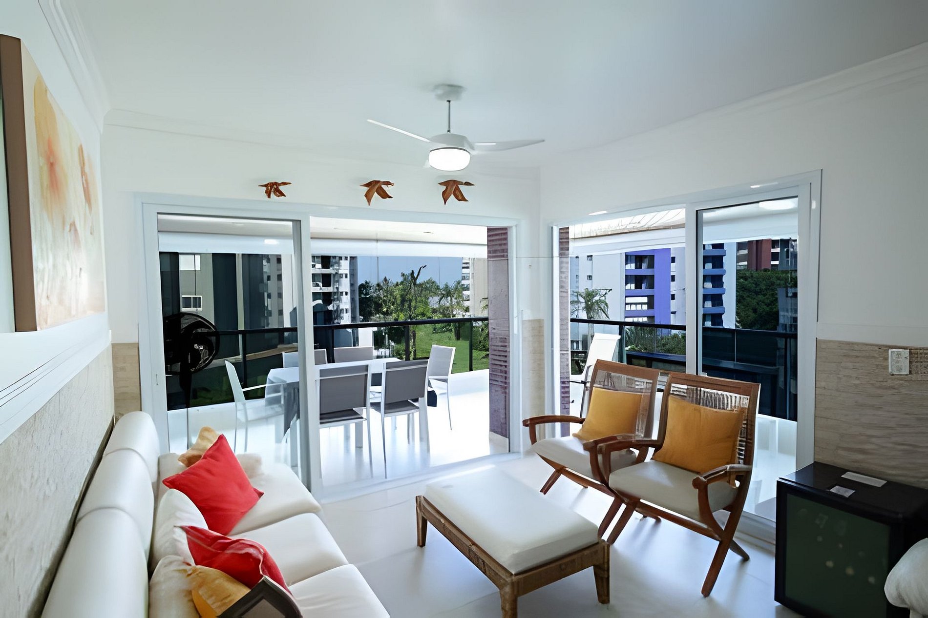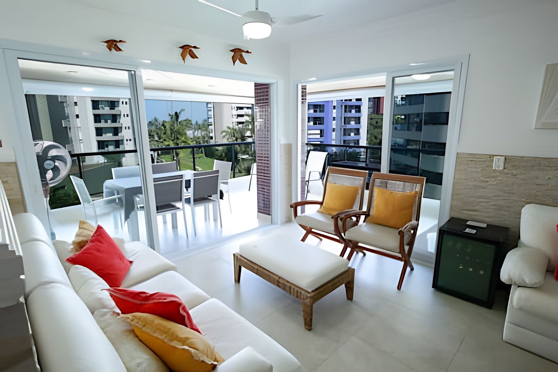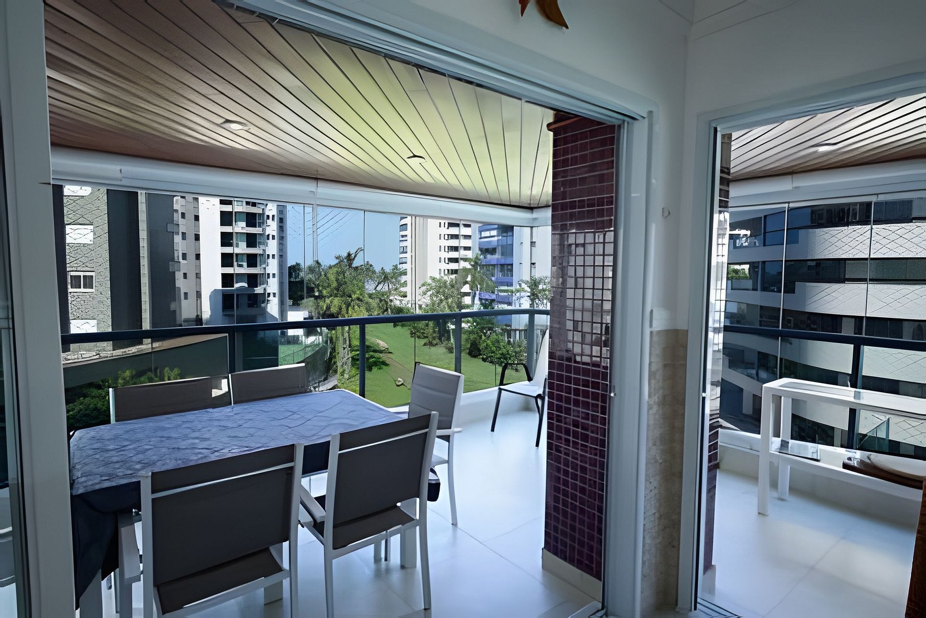 - Espaço e Privacidade: O apartamento possui duas suítes e um quarto adicional. A suíte master conta com uma varanda privativa com uma vista espetacular para a praia.