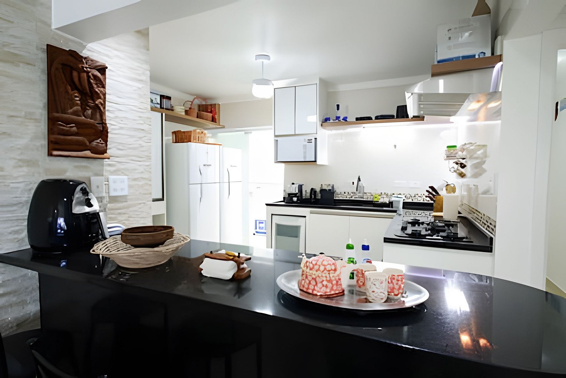 - Cozinha Completa: A cozinha é um verdadeiro paraíso para quem ama cozinhar, equipada com cooktop de 5 bocas, forno elétrico embutido (74 litros), micro-ondas (34 litros), máquina de lavar louça (8 serviços), cafeteira elétrica, máquina de café expresso, duas sanduicheiras, liquidificador, batedeira, tostadeira, máquina de waffles, panela de arroz elétrica e panela de fondue. e duas geladeiras duplex para manter todos os seus alimentos e bebidas frescos.